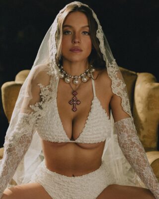 Sydney Sweeney Goes Viral Showing Off Perfect Boobs in White Ruffle Bikini