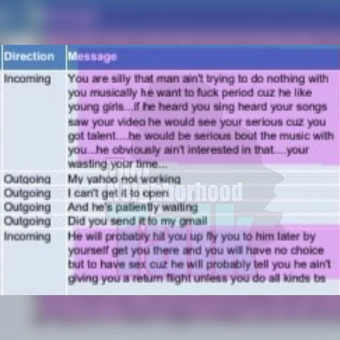 Text Messages Expose Azriel Clary’s Mother Alice Clary Instructing Her To Entice R Kelly by Samuel Clement April 12, 2023 Facebook X Linkedin Whatsapp Bluesky Threads Reddit Pages: 1 2 3 4 5 6 7 « Prev12345 6 7Next » « PrevNext » Samuel Clement Latest posts Samuel is the Sr. entertainment reporter for BSO and deputy editor Tetairoa McMillan Wins NFL’s Offensive Rookie of The Year Award After N-Word Controversy Kay Adams ‘Grills’ Cooper DeJean On Romance Rumors With Nikki Bella Matthew Stafford Promises To Return For 2026 Season After Winning MVP For 2025 Sheff G And GF Break Up After Wiring Her $100k For Being Loyal To Him While In Prison View all Tags: R Kelly Follow us on Facebook Most Popular 1 Falcons James Pearce Jr. Arrested After Dispute With Sparks Rickea Jackson 2 Read Floyd Mayweather’s Full Lawsuit Against Showtime & Accusations Against Al Haymon 3 Kim Kardashian Speaks on NIKE SKIMS Collab & Her Relationship With Kanye West 4 Jaxson Dart’s Girlfriend Marissa Ayers Goes Viral at NFL Honors BSO Shop 10% Discount Sale Previous Story Target Security Guard Punches Karen Ivery For Demanding Her $1K Bill Be Paid By Reparations Next Story Cardi B Flaunts Her Massive Booty While Being Stretched Out By Personal Trainer Wade Bryant