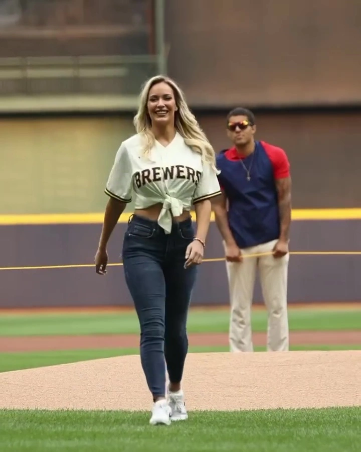 Paige Spiranac has gone viral on the socials after rocking an unbuttoned shirt and throwing the first pitch at the Milwaukee Brewers MLB game. Baseball fans are going nuts over her unbuttoned shirt while showing off her thick thighs in a jeans via the SUN;