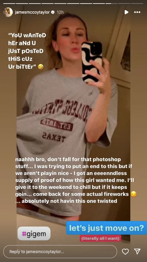 Bachelorette Alum James McCoy Taylor Releases Photos To Prove Nick Saban’s Married Daughter Kristen Saban Had An Affair With Him by Samuel Clement May 5, 2024 Facebook X Linkedin Whatsapp Bluesky Threads Reddit Pages: 1 2 3 « Prev12 3 « Prev Samuel Clement Latest posts Samuel is the Sr. entertainment reporter for BSO and deputy editor Tetairoa McMillan Wins NFL’s Offensive Rookie of The Year Award After N-Word Controversy Kay Adams ‘Grills’ Cooper DeJean On Romance Rumors With Nikki Bella Matthew Stafford Promises To Return For 2026 Season After Winning MVP For 2025 Sheff G And GF Break Up After Wiring Her $100k For Being Loyal To Him While In Prison View all Tags: James McCoy TaylorKristen Saban Follow us on Facebook Most Popular 1 Falcons James Pearce Jr. Arrested After Dispute With Sparks Rickea Jackson 2 Read Floyd Mayweather’s Full Lawsuit Against Showtime & Accusations Against Al Haymon 3 Kim Kardashian Speaks on NIKE SKIMS Collab & Her Relationship With Kanye West 4 Jaxson Dart’s Girlfriend Marissa Ayers Goes Viral at NFL Honors BSO Shop 10% Discount Sale Previous Story Watch Trap Lore Ross Speak On King Von’s Involvement In 7 Murders Next Story Jimmy Butler’s Goes Viral for His Comments After Knicks Game : “I Wanna Beat You to a Pulp”