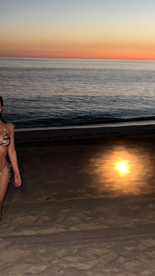 The founder of SKIMS posted a video of herself walking across a beach at 8 p.m. PST, then she emerged from the water and walked over to the camera.