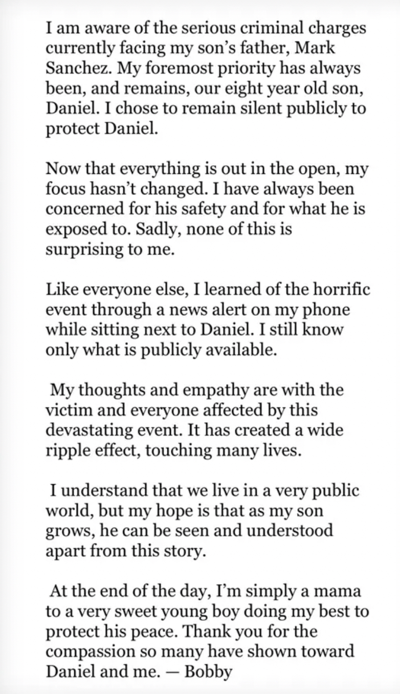 Mark Sanchez’s Baby Mama Bobby T Says She’s Not Surprised He Beat Up Old Man by Samuel Clement October 13, 2025 Facebook X Linkedin Whatsapp Bluesky Threads Reddit Pages: 1 2 3 4 « Prev1 2 34Next » « PrevNext » Samuel Clement Latest posts Samuel is the Sr. entertainment reporter for BSO and deputy editor Jalen Hurts Speaks On Eagles’ Defeat To The Chargers AJ Brown Tells Jalen Hurts “We In This Thing Together” Wrestling Champ Jade Cargill Shows Off Raw Body In Tiny Bikini GloRilla Drops Wild Video Of Herself Dancing To Impress NBA Boyfriend Brandon Ingram View all Tags: Bobby TErin CampanerisHeadlineMark Sanchez Follow us on Facebook Most Popular 1 Police Shot and Killed an Ex-Memphis Football Player La’Andre Thomas After Claiming He Pulled a Gun 2 Sakiyna Thompson Jailed For Life For Murdering Her Ex-Boyfriend New Girlfriend, Kayla Hodgson 3 Mark Sanchez on Being Thankful The Old Man He Beat Up Didn’t Kill Him 4 911 Call of Ex-Lakers Elden Campbell’s Body Being Found Dead on the Beach BSO Shop 10% Discount Sale Previous Story Kevin Durant Drops Shocking Message To Suns Fans Ahead Of NBA Season Next Story Tua Tagovailoa Says He’s Teammates Are Missing Meetings