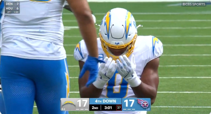 🚨🚨POWERFUL MOMENT🚨🚨#Chargers star linebacker Daiyan Henley with a big sack and immediately got down on the knee and started PRAYING TO HEAVEN.