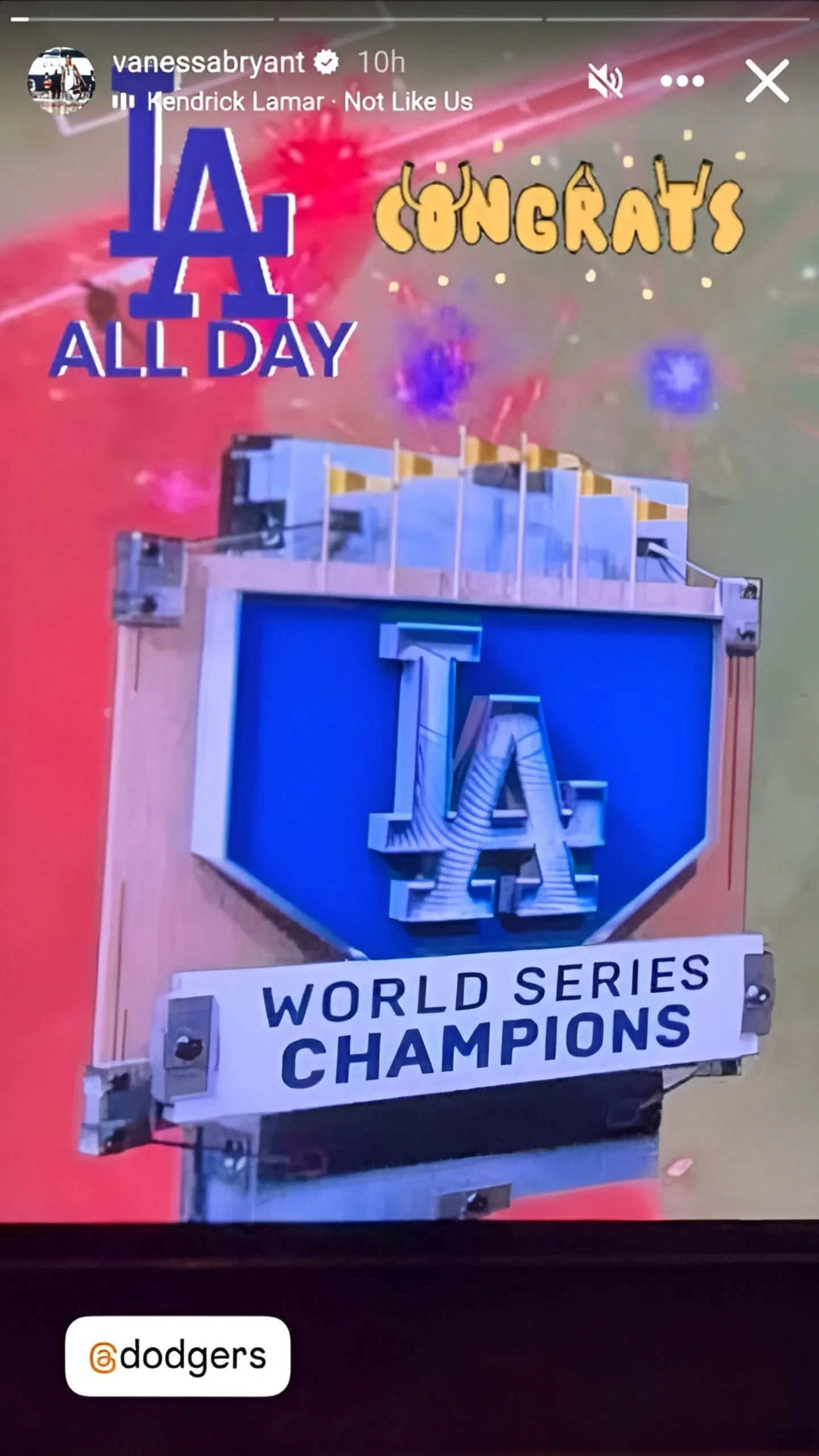 Kobe Bryant had a strong affinity for the Los Angeles Dodgers. He was undoubtedly enjoying the thrilling Game 7 triumph over the Toronto Blue Jays on Saturday night, which handed the city its first repeat champion since his Los Angeles Lakers. Following the Dodgers‘ ninth World Series victory, his wife Vanessa Bryant honored Kobe and the club.