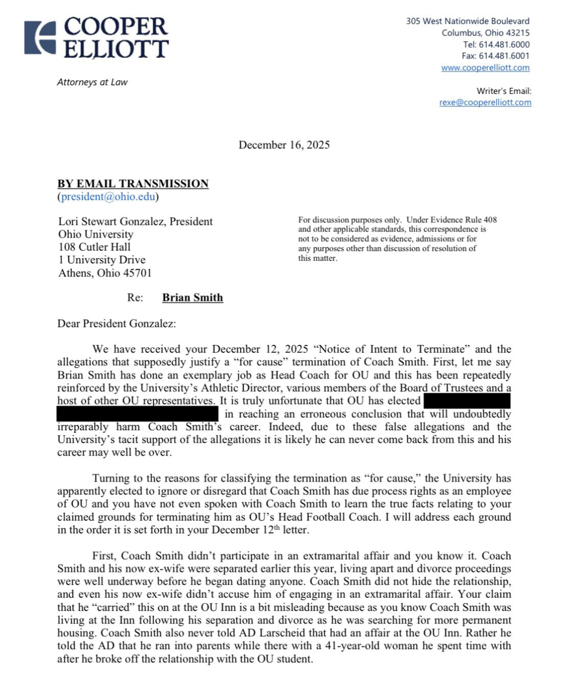 Smith was terminated for cause on Dec. 17, less than a year into his tenure as head coach, after an administrative review by the university cited “serious professional misconduct” and conduct that reflected unfavorably on the institution. The university’s letter to Smith referenced allegations of extramarital affairs, including one with an undergraduate student, and violations of internal policies, including those related to alcohol on campus.