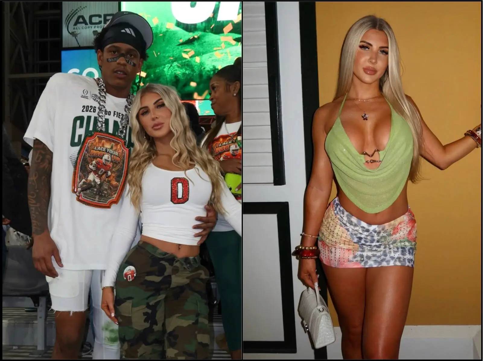 Hannah Straub, a fitness and lifestyle influencer, is seeing a spike in online attention following her public appearances with University of Miami wide receiver Keelan Marion during the Hurricanes’ push to the college football national championship.