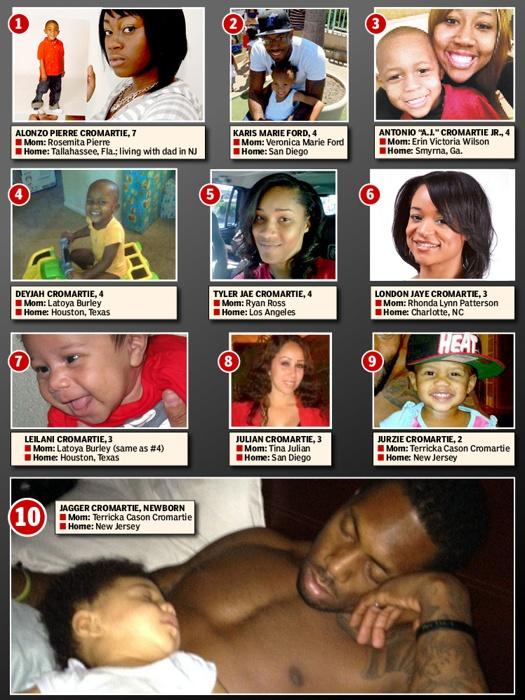 The baby mamas he left behind have banded together so their kids can bond with their brothers and sisters in California, Texas, Florida, Georgia, North Carolina and New Jersey.
