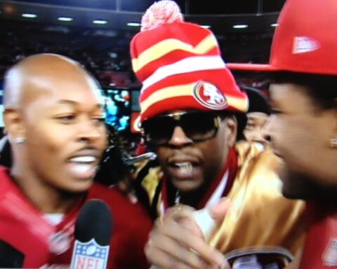 Michael Crabtree was giving his Post Game interview with the NFL Network when a teammate Carlos Rogers comes over to sing a little “All I Do is Win” and make sure we…