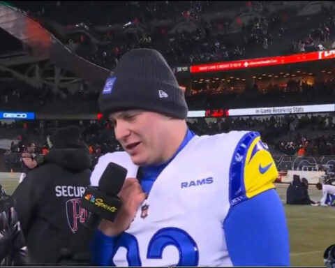 Harrison Mevis got fans scratching their heads following his interview with NBC after win against the Bears. Harrison Mevis had one job after the Los Angeles Rams won. Smile, say the usual…