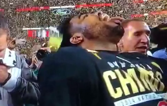 Uhh, Ezekiel Elliott, that’s not snow. Following the Ohio State Buckeyes’ 42-20 victory over the Oregon Ducks in the 2015 College Football National Championship, Elliott could be seen trying to eat the…
