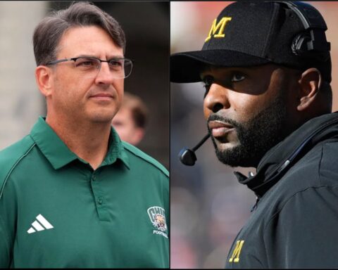 Sherrone Moore showed up to court looking way calmer than most people would. Too calm, actually but his wife Kelli Moore wasn’t having it. He laughed, smiled and looked like a man…